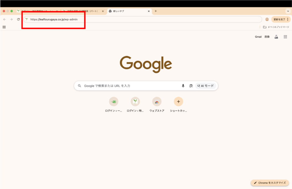 - WordPress管理画面にログインします。 (例: