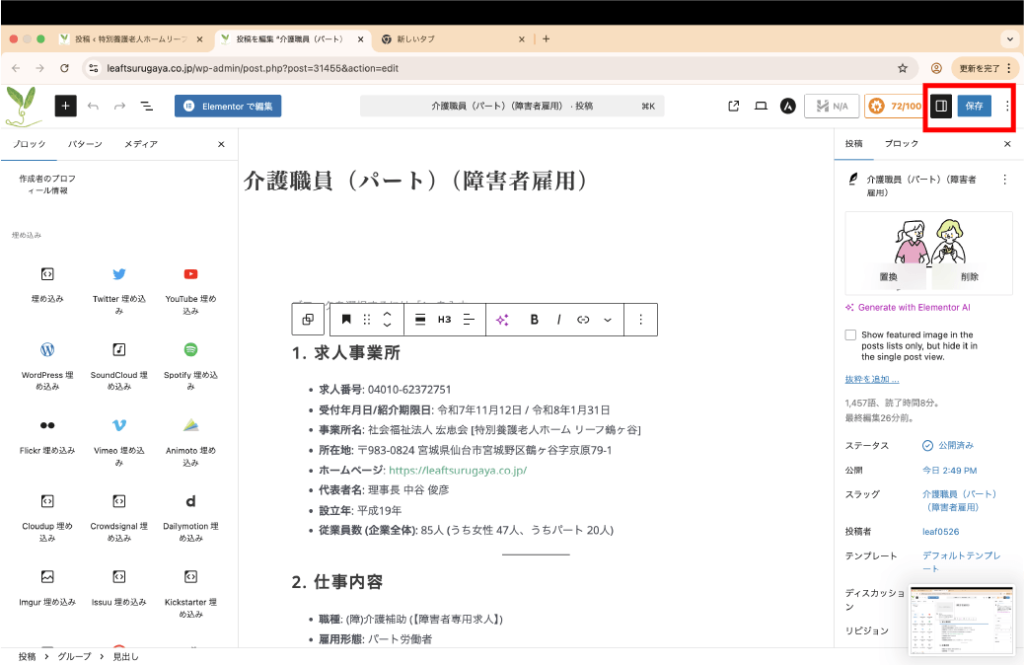 - 公開:問題がなければ、画面右上の「公開」ボタンをクリックします。